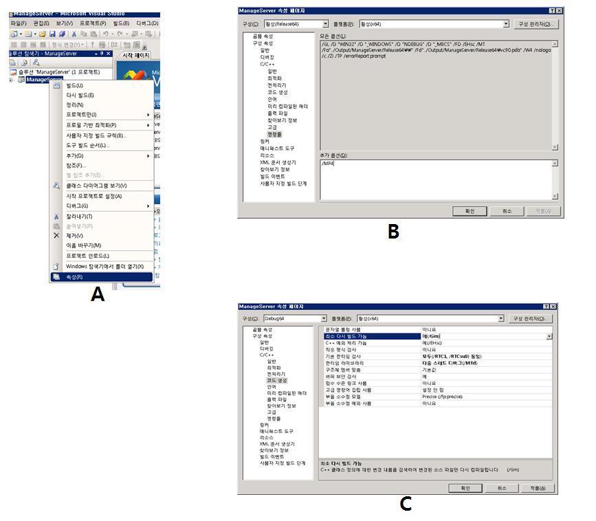 그래서 디버그 모드에서는 그림 C에 나와 있는 ‘최소 다시 빌드 가능’을 ‘아니오’로 해야합니다.