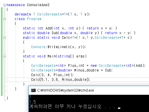 Type3 F3Delegate = func3; // C# 2.0부터 사용가능