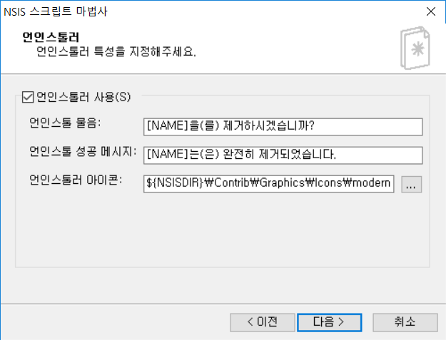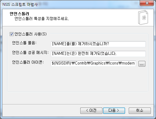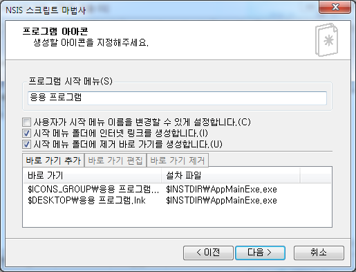 바로가기는 뭐로 만들거냐, 언인스톨 기능은 사용할꺼냐,, 어쩌구저쩌구 그러는데요