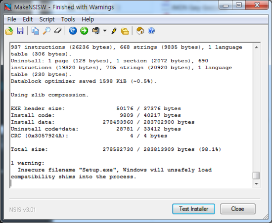 NSIS 가 무료 프로그램중 압축률이 가장 좋다고 들었는데