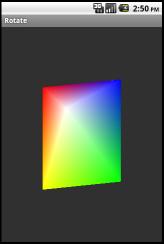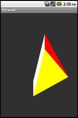 이 메서드는 임의의 스레드에 호출 가능하므로 그리기 정보가 바뀐 즉시 언제든지 호출할 수 있다. 다음 예제는 2차원의 삼각형을 그린다. 안드로이드 OpenGL 프로그램의 가장 간단한 예이며 이 강좌에서 윈도우용으로 처음 만들었던 예제를 안드로이드로 포팅한 것이다.