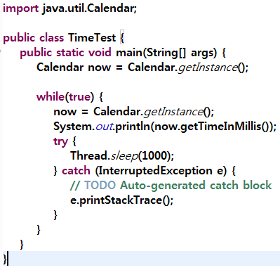 System.currentTimeMillis()를 호출하면 현재의 시간을 밀리세컨드 단위로 불러올 수 있다.