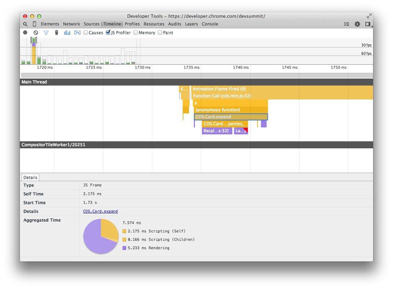 - Chrome DevTools의 Timeline 및 자바스크립트 프로파일러를 사용하여 자바스크립트의 영향을 평가합니다.