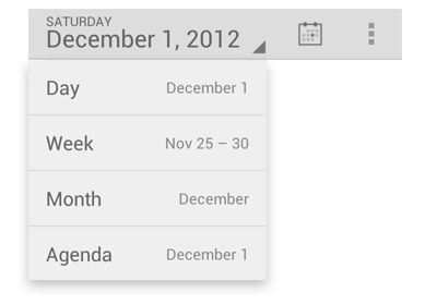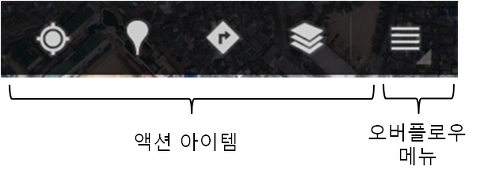 안드로이드 3.0부터는 메뉴가 액션바의 오버플로우 메뉴(눌렀을 때 리스트로 나타나는 메뉴)에 표시되며, 메뉴 항목 중 빈번한 사용이 예상되는 항목은 액션바에 바로 항목이 노출되도록 할 수 있습니다. 이렇게 오버플로우 메뉴가 아닌 액션바에 바로 노출되는 항목을 액션 아이템(Action item)이라 합니다.