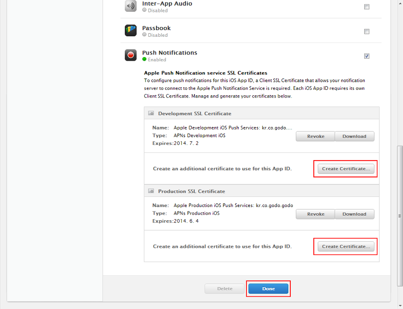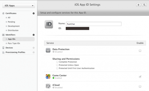 Certificates, Identifiers & Profiles > App IDs > [the app id] > Edit > Push notifications >