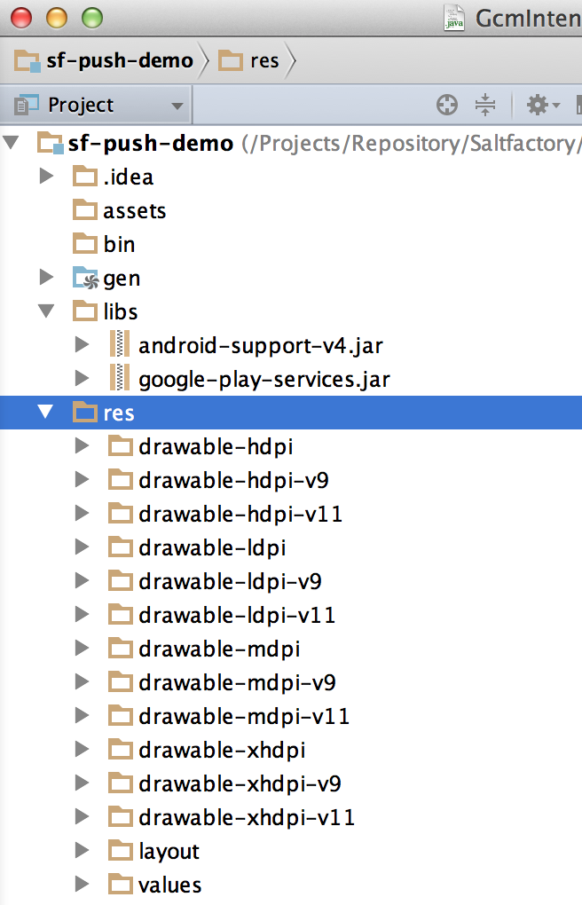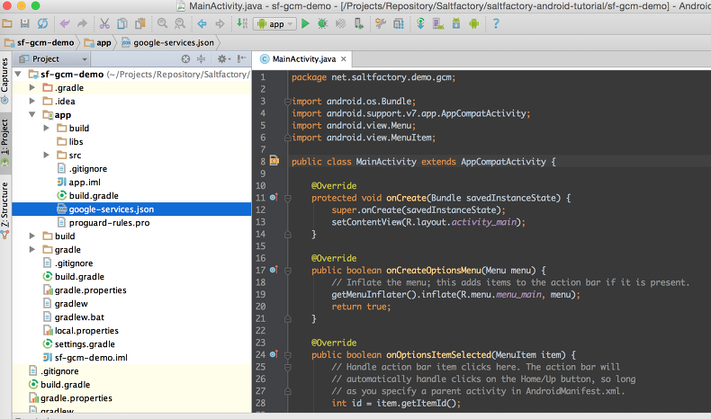 - Project location : /Projects/Repository/Saltfactory/saltfactory-android-tutorial/sf-gcm-demo