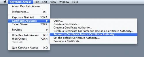 Keychain Access -> Certificate Assistant -> Request a certificate from a Certificate Authority