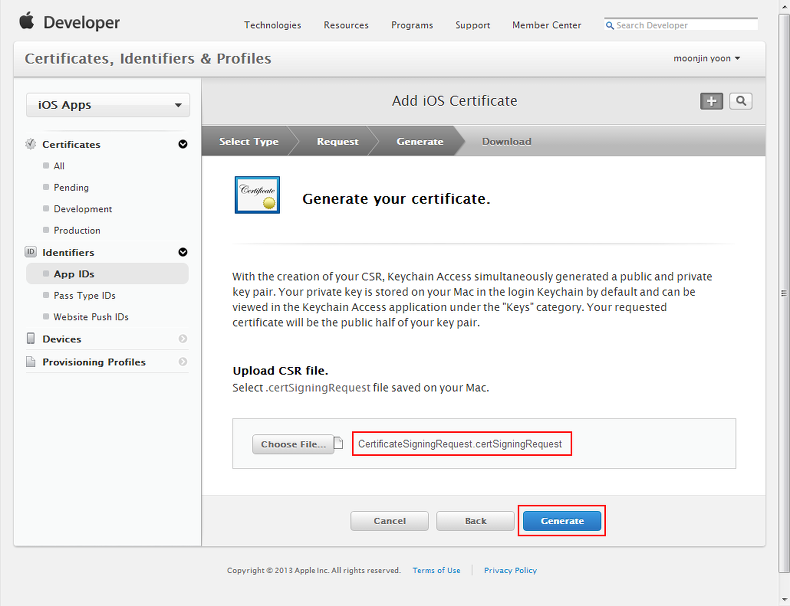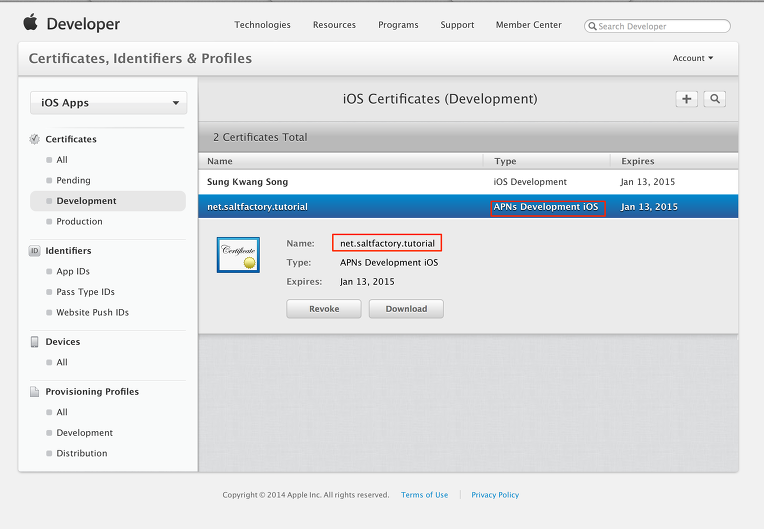 Getting certificates from the Apple