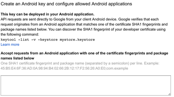 페이지가 전환되면서 Android 앱을 등록하는 화면이 나온다. GCM을 사용하기 위해서 앱을 등록하는 화면이다.