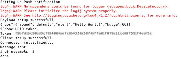 >mvn exec:java -Dexec.mainClass="PushNotifications" -Dexec.args="1testdevicetoken3eb414627e789ba5d18930ac137 'My test iOS push notification!' dev"