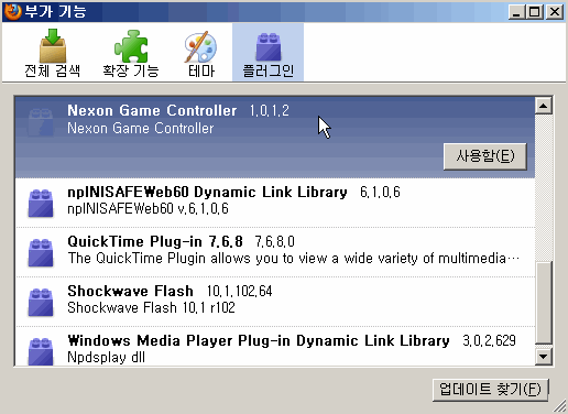 아래 그림은 파이어폭스에 설치된 플러그인 화면이다