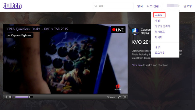 보관된 지난 방송을 확인하기 위해서는 우선 트위치에 로그인 하신 후, 메인 화면에서 “프로필” 페이지로 들어가주세요.