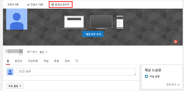 설정 화면에서 채널&동영상 탭으로 들어가시고,