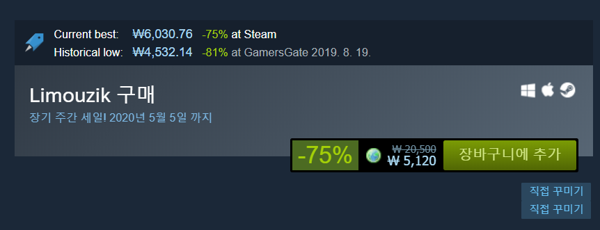 //할인율은 제작사 사정에 따라 다릅니다. 스팀세일(여름,겨울,기타)또는 제작사에서 상시로 할인할 때를 노리세요!!