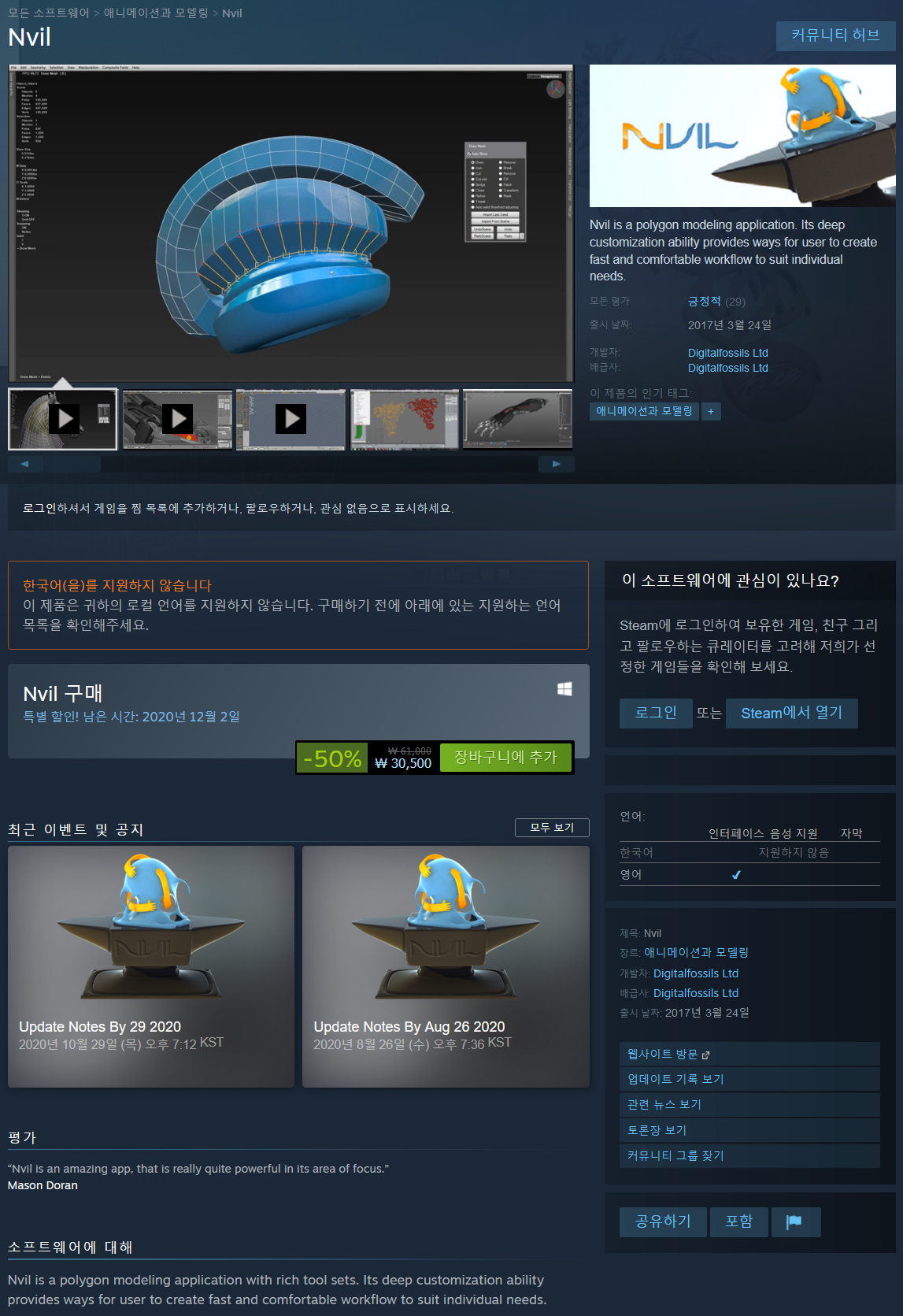 Nvil은 다양한 도구 세트가 포함된 폴리곤 모델링 애플리케이션입니다. 깊은 사용자 정의 기능은 사용자가 개별 요구에 맞게 빠르고 편안한 워크플로를 생성할 수 있는 방법을 제공합니다.