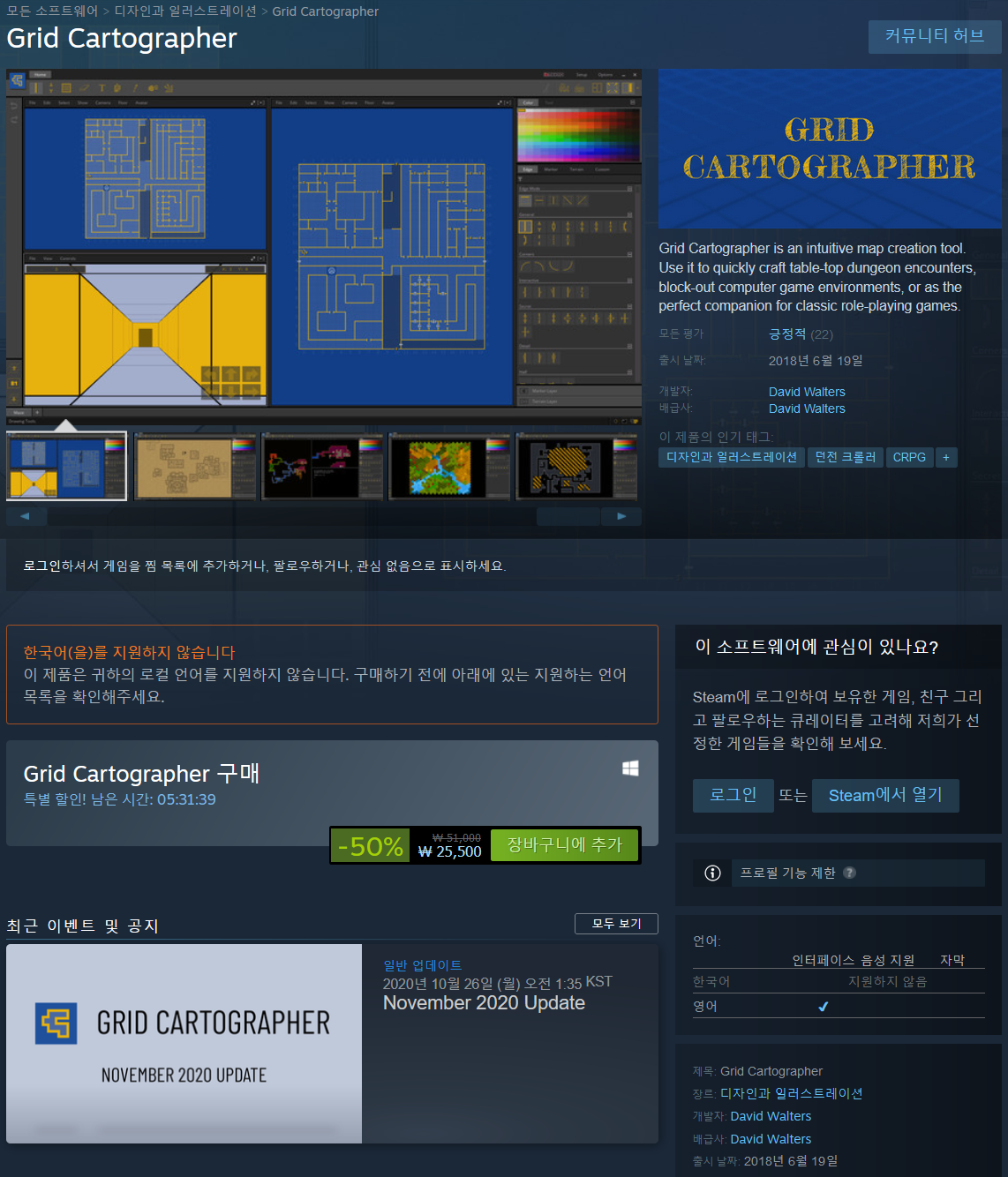 고전 RPG를 플레이하는 사람들을 위한 지도 그리기 도구 "그리드 카토그래퍼"(Grid Cartographer)입니다.최근에 나오는 게임이야 오토맵은 물론 초정밀 GPS에 증강현실 내비게이션까지 달려있습니다만, 고전 RPG의 던전에서 생존하려면 종이에 직접 지도를 그리면서 플레이하는 게 기본이었습니다. 종이에는 종이 만의 장점도 있고 왠지 몰입하기도 좋지만, 이런 컴퓨터 프로그램이 있다면 공간 활용과 저장이 용이할 것 같습니다.