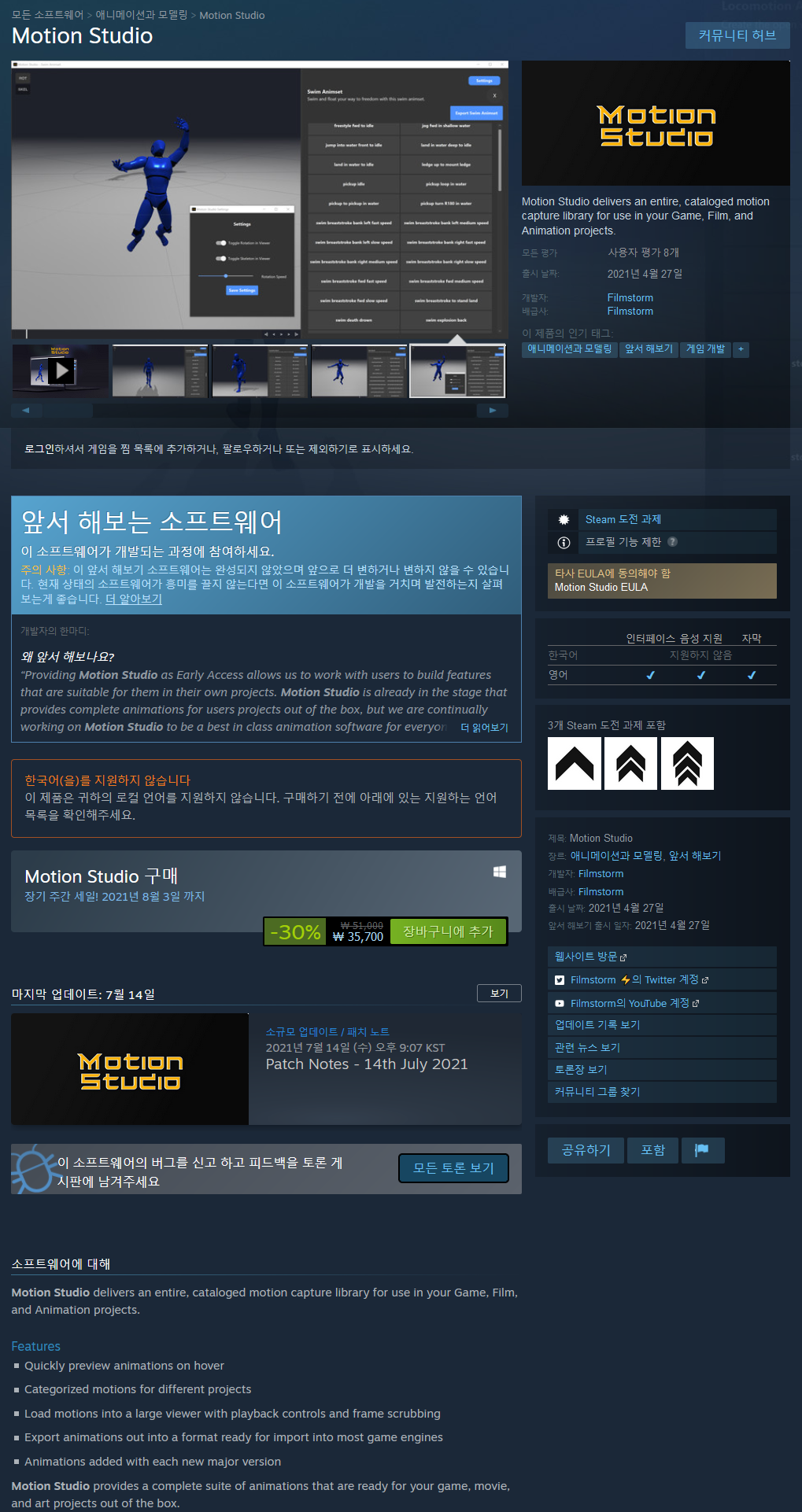 Motion Studio는 EA임에도 불구하고 세련되고 매끄럽게 느껴집니다. 확실히 추천합니다.