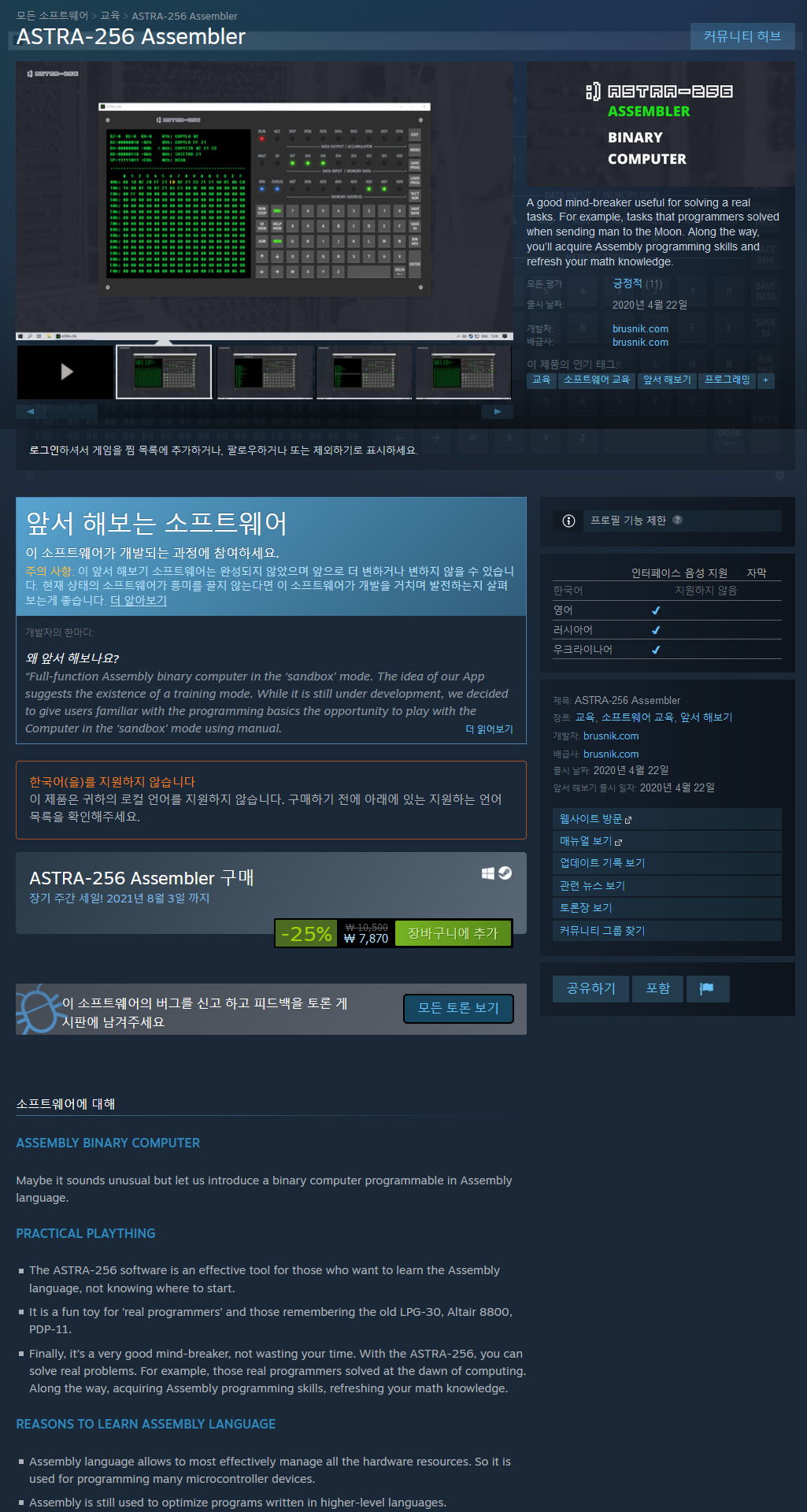 ASTRA-256 소프트웨어는 어디서부터 시작해야 할지 모르는 어셈블리 언어를 배우고자 하는 사람들에게 효과적인 도구입니다.