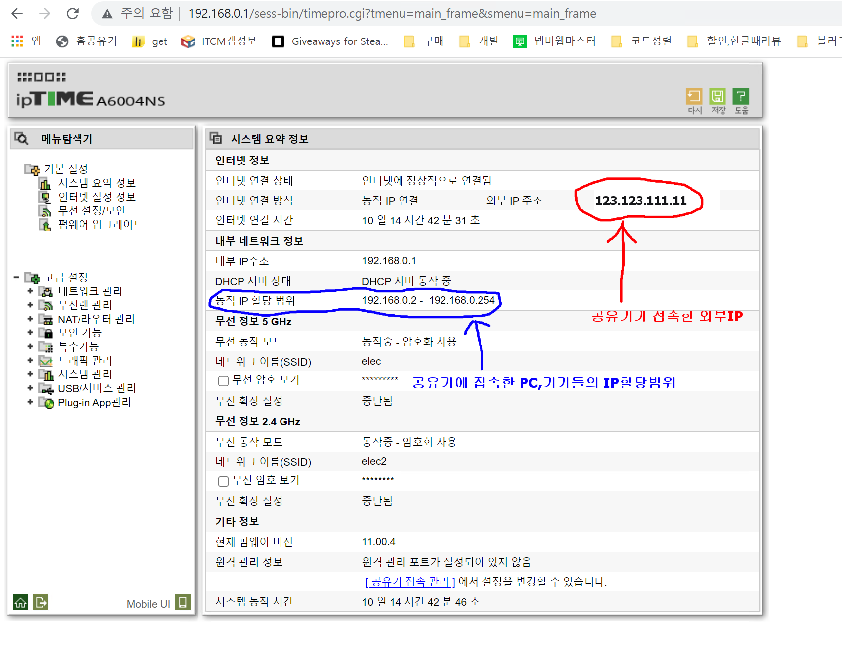 [ipTime공유기에서는 자신이 연결할 PC에서 ipTime공유기 설정에 들어가서