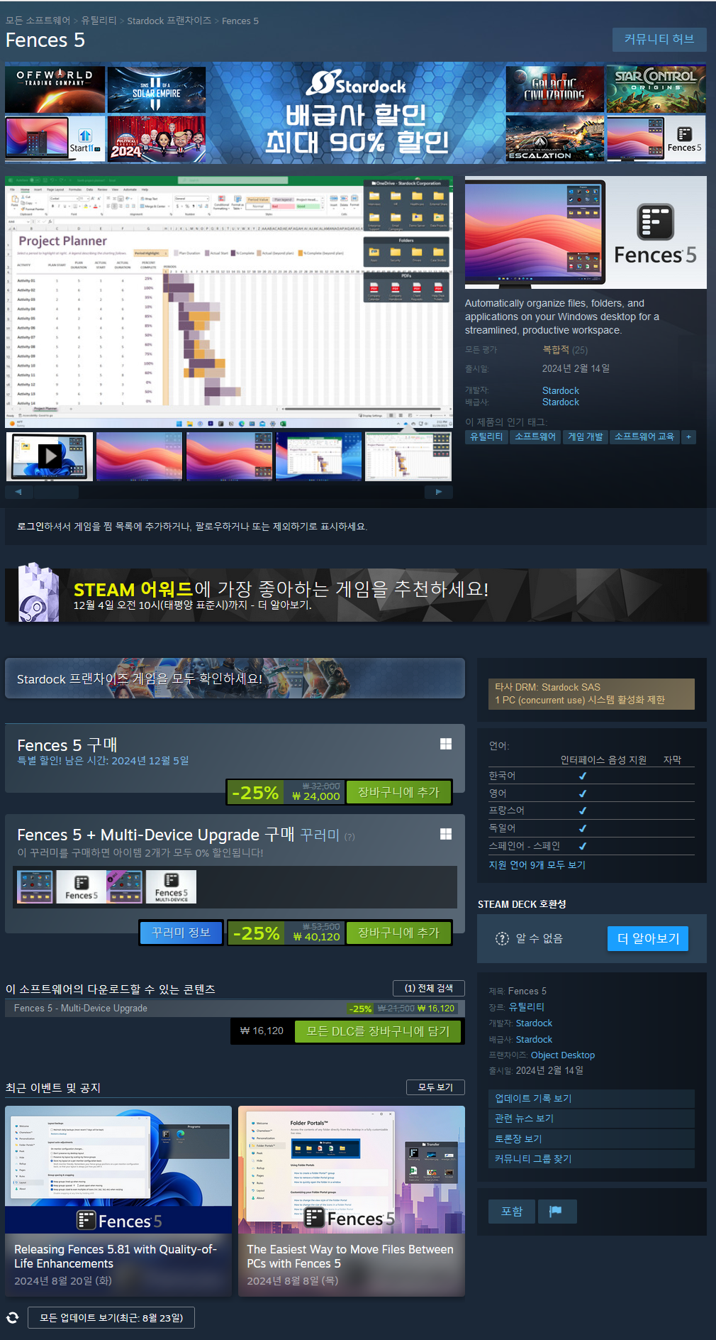 - https://store.steampowered.com/search/?term=fence&developer=Stardock