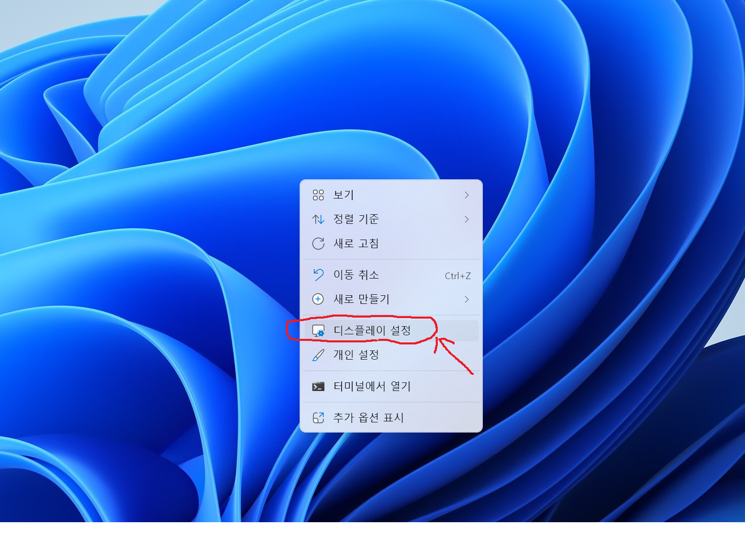 "디스플레이 설정"을 눌러준다.