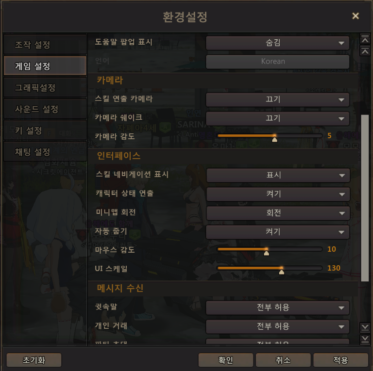 게임설정 - 카메라 관려된건 전부 끄고