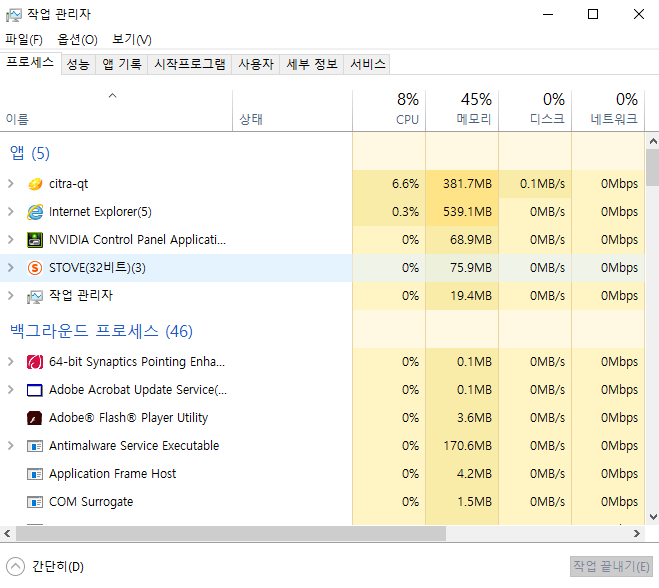 시스템 프로세스잡아먹는 것들 자주 관리해주면 좋음. ㅇㅇ클린 이런거 깔아서 가끔씩 청소해주자.