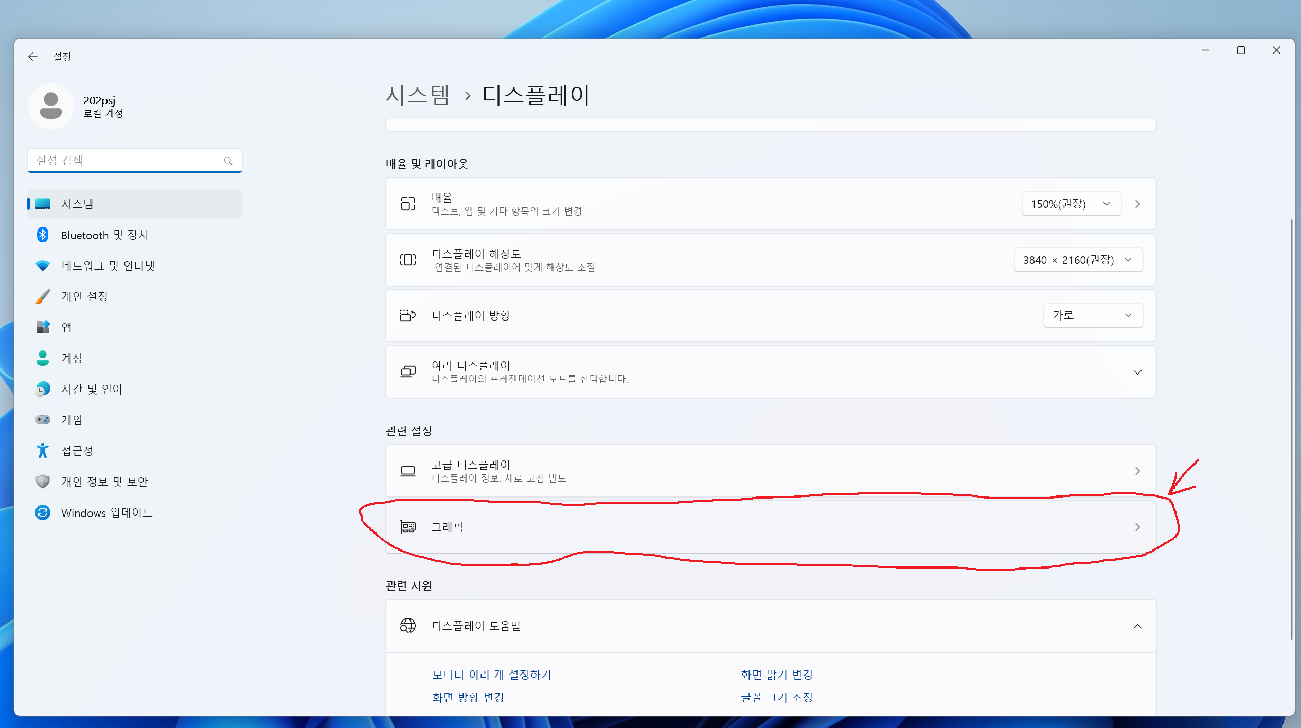 윈도우 "디스플레이설정>그래픽 설정" 셋팅으로 성능 올리기"