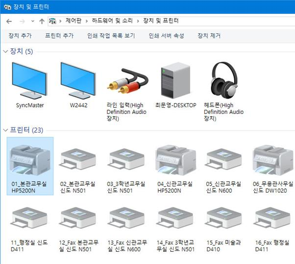 특정 기능이 작동을 하면 프린터장치들이 무작위로 오프라인 또는 비활성화 상태가 된다.