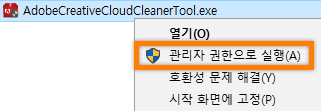 참고:마우스 오른쪽 버튼으로 클릭할 때 관리자 권한으로 실행을 사용할 수 없으면 AdobeCreativeCloudCleanerTool.exe를 더블 클릭하여 파일을 실행합니다.