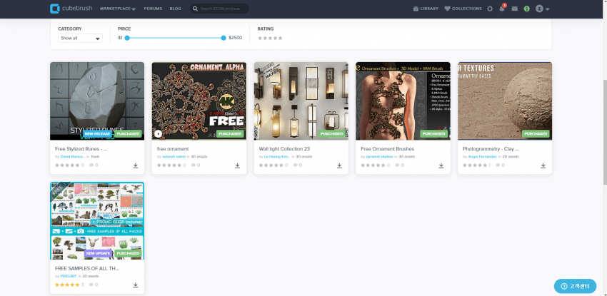 4. 큐브브러쉬 https://cubebrush.co/marketplace?freebies=true
