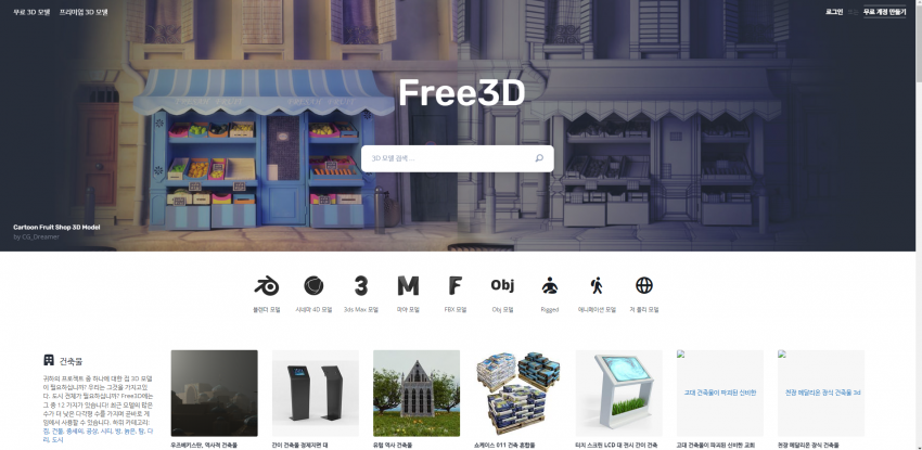 프리3D랑 비슷한 느낌인 사이트야. 약간 퀄리티 올라간 프리3D 느낌?