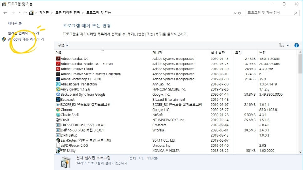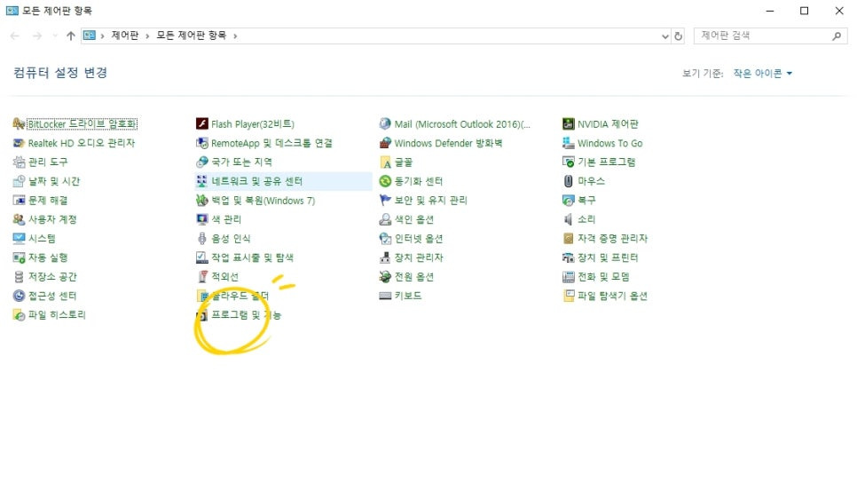 프로그램 및 기능 이라는 메뉴가 보이실겁니다! 클릭해주세요!