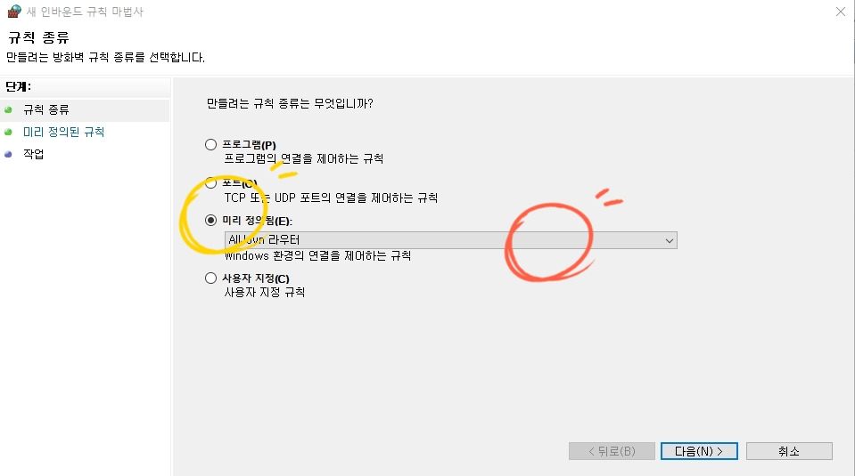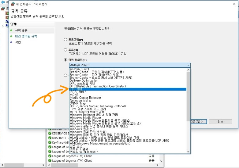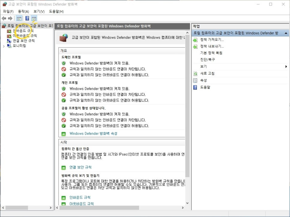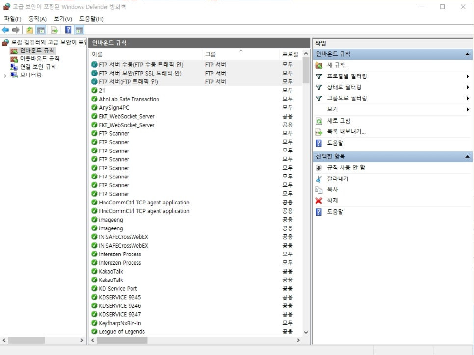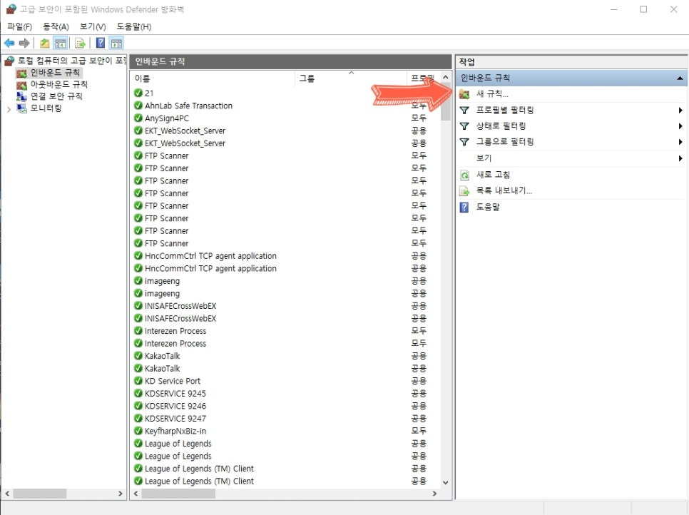 또 왼쪽에 인바우드 규칙 더블 클릭하신후