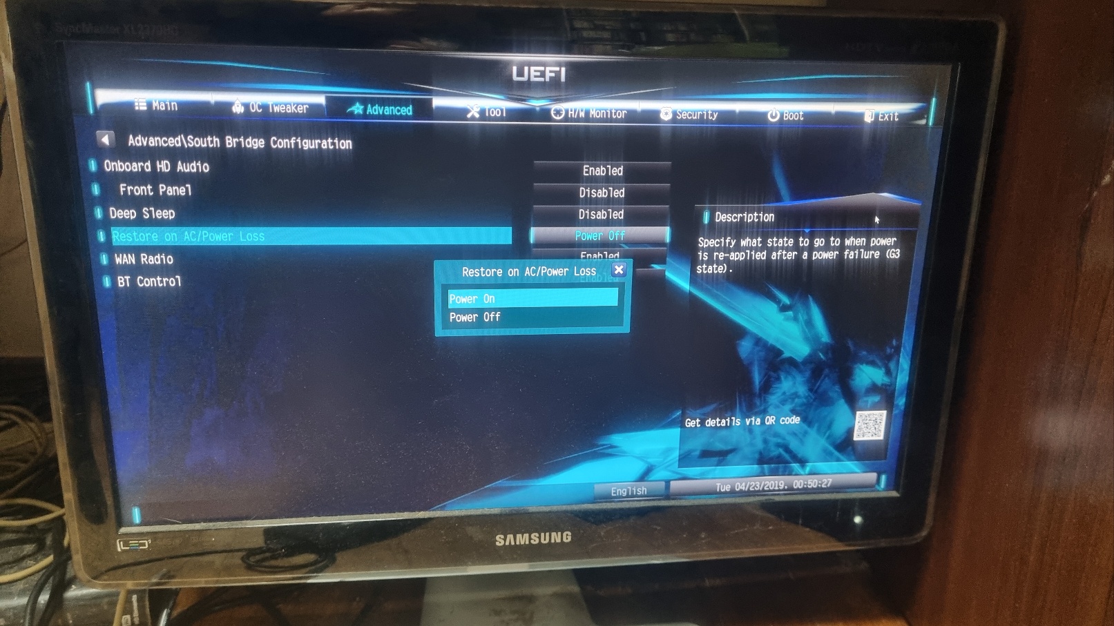 전원이 끊겼다가 들어오게되면 설정부분인데 저부분을 Always on / power on 으로 설정해주시면 전원이 끊겼다가 들어오게되면 재부팅이 되는것을 이용하여 합니다