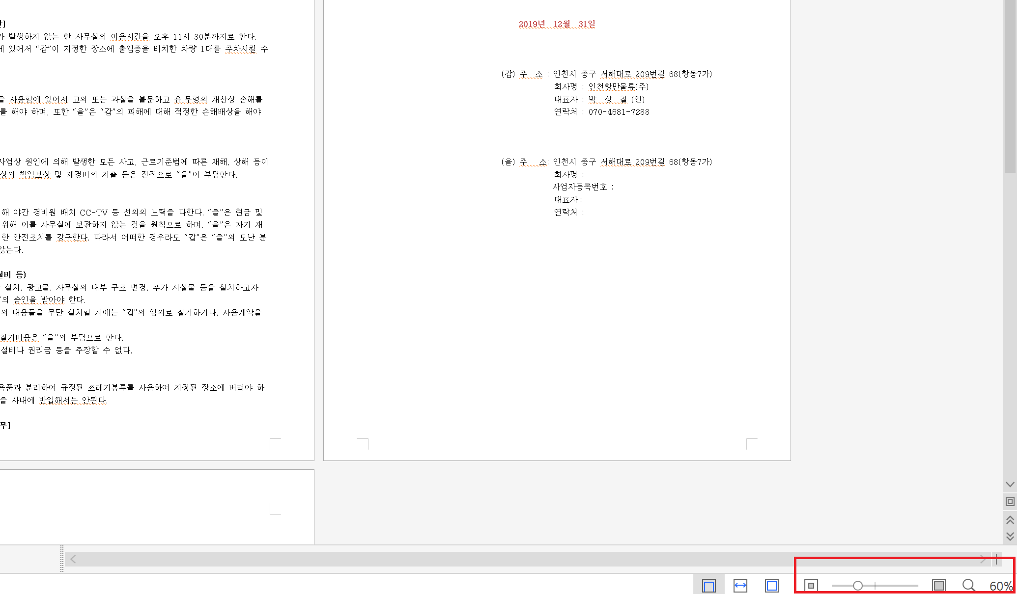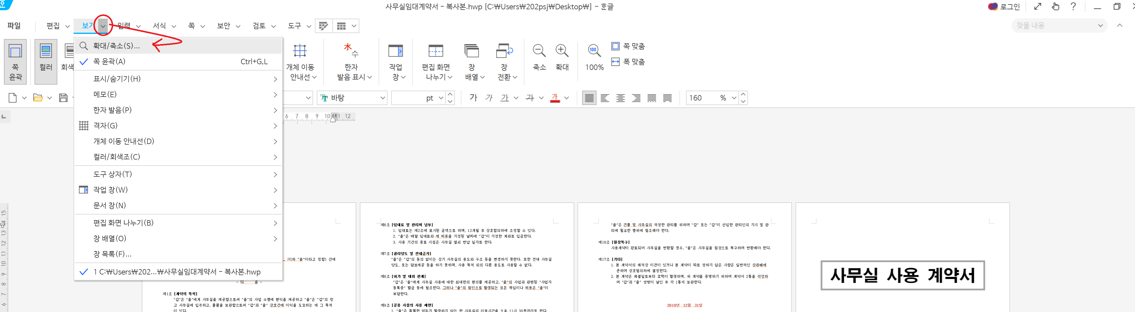 페이지를 작게 또는 크게 Zoom하여 볼 수 있다.
