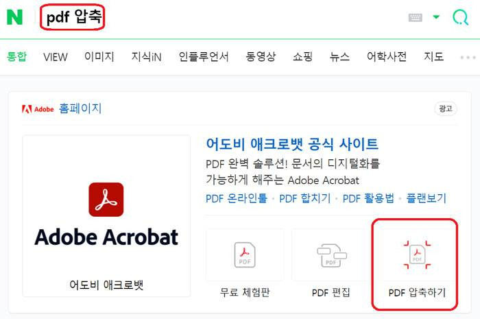 포털사이트에서 ‘PDF 압축’을 검색해 이용할 수 있습니다.