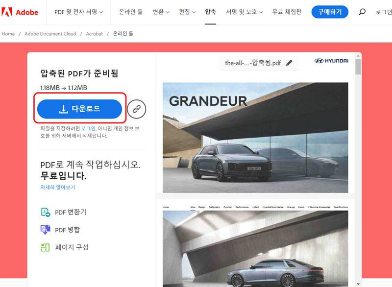 압축이 완료되면 PDF 파일을 다운로드할 수 있습니다.