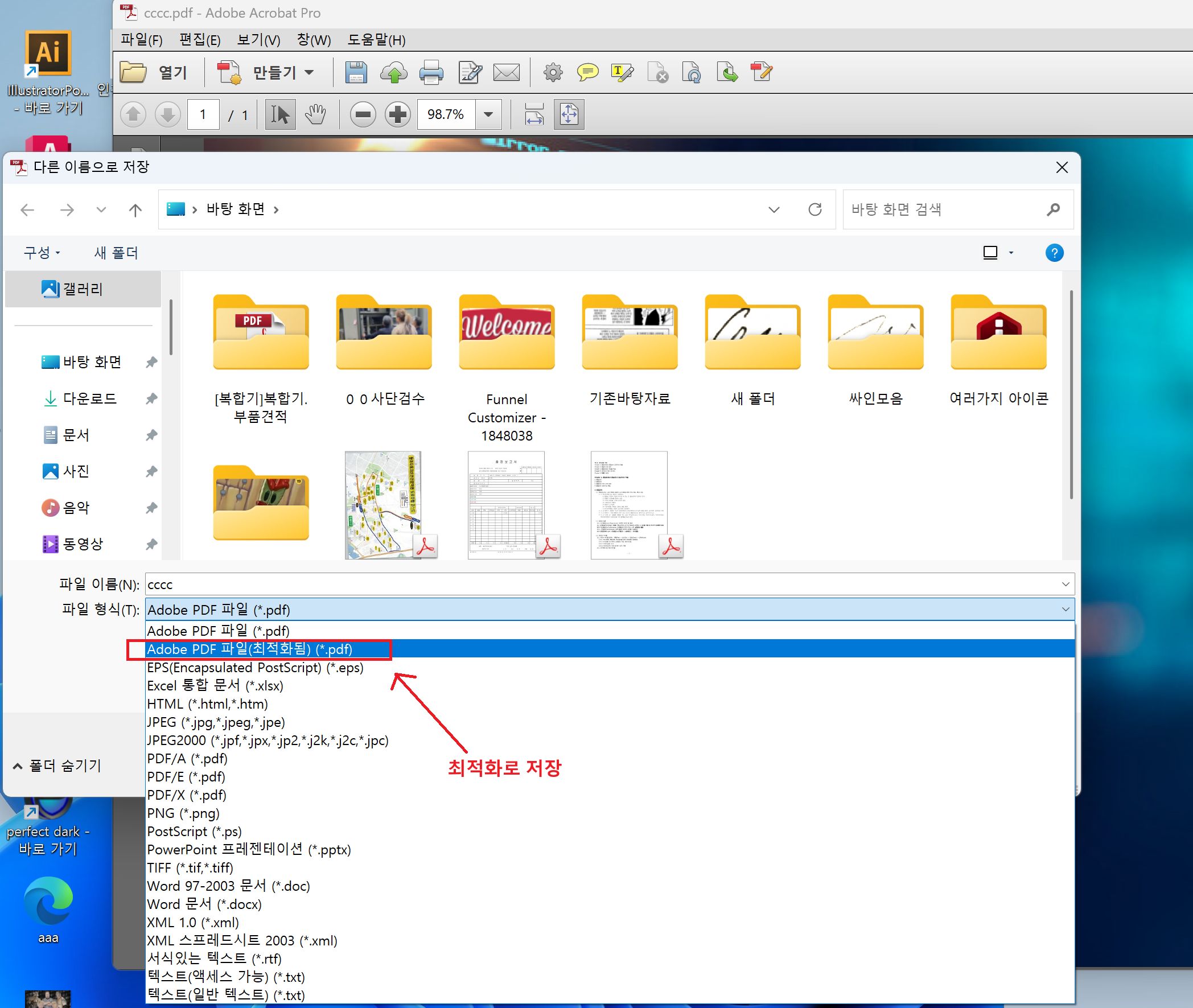 아크로벳 편집 프로그램으로 최적화 저장을 해주는 방법