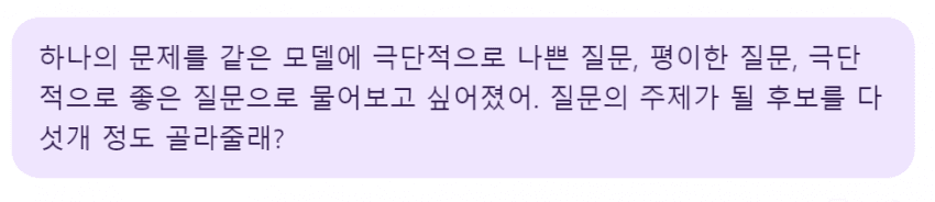 - 좋은 질문: 모델이 불필요한 고민을 하지 않도록 문제 공간을 충분히 압축해 준 질문입니다.